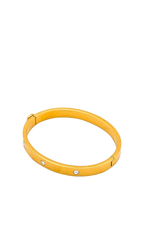 Electric Picks Jewelry Forever Bracelet in Metallic Gold. Electric Picks Jewelry Forever Bracelet in Metallic Gold. Gold-tone metal with clear crystals. Imported. Hinge closure. Measures approx 2.25 in diameter. EPIC-WL151. E659-G. Electric Picks Jewelry is more than just another gold chain. Founded in 2011 by best friends MJ Carlson and Chantel Gia, the brand was born of the idea that jewelry holds our stories and lives our experiences with us. The duo scours the globe for vintage treasures, charms and tokens and recasts them for modern wear. Their cast vintage collection is complimented by a selection of new chains, natural elements and charms -all carefully crafted by New York City metalsmiths. Wherever your story may take you, stay golden. Shop the latest in fashion from Electric Picks Jewelry