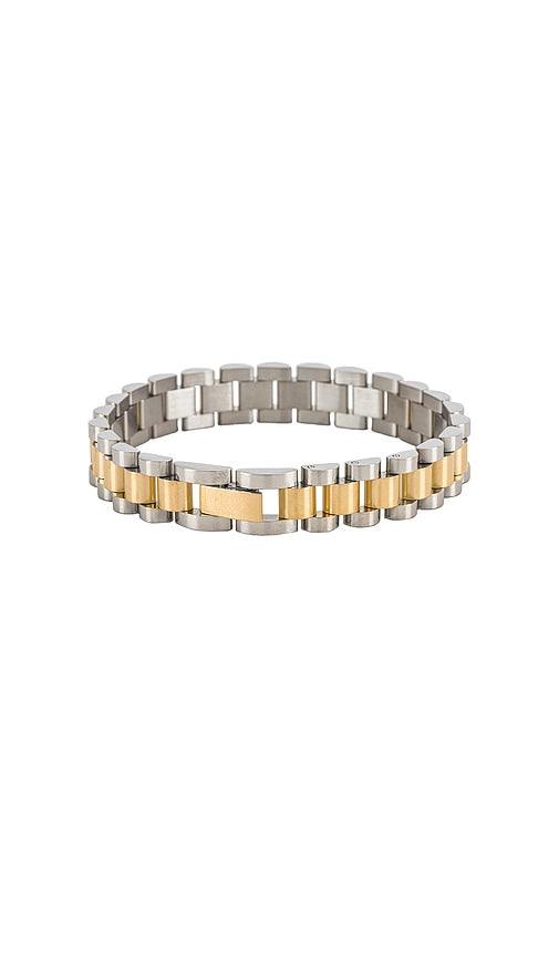 Luv AJ The Two-Toned Timepiece Bracelet in Metallic Gold