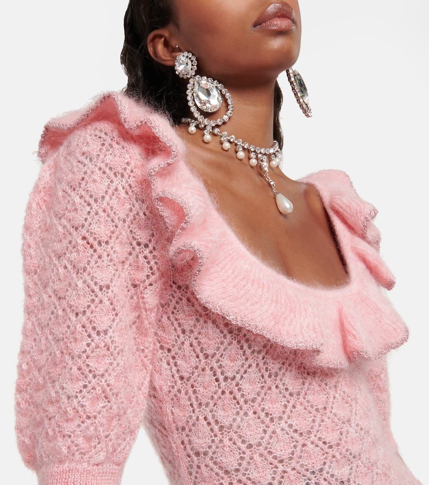 Alessandra Rich Embroidered mohair-blend minidress