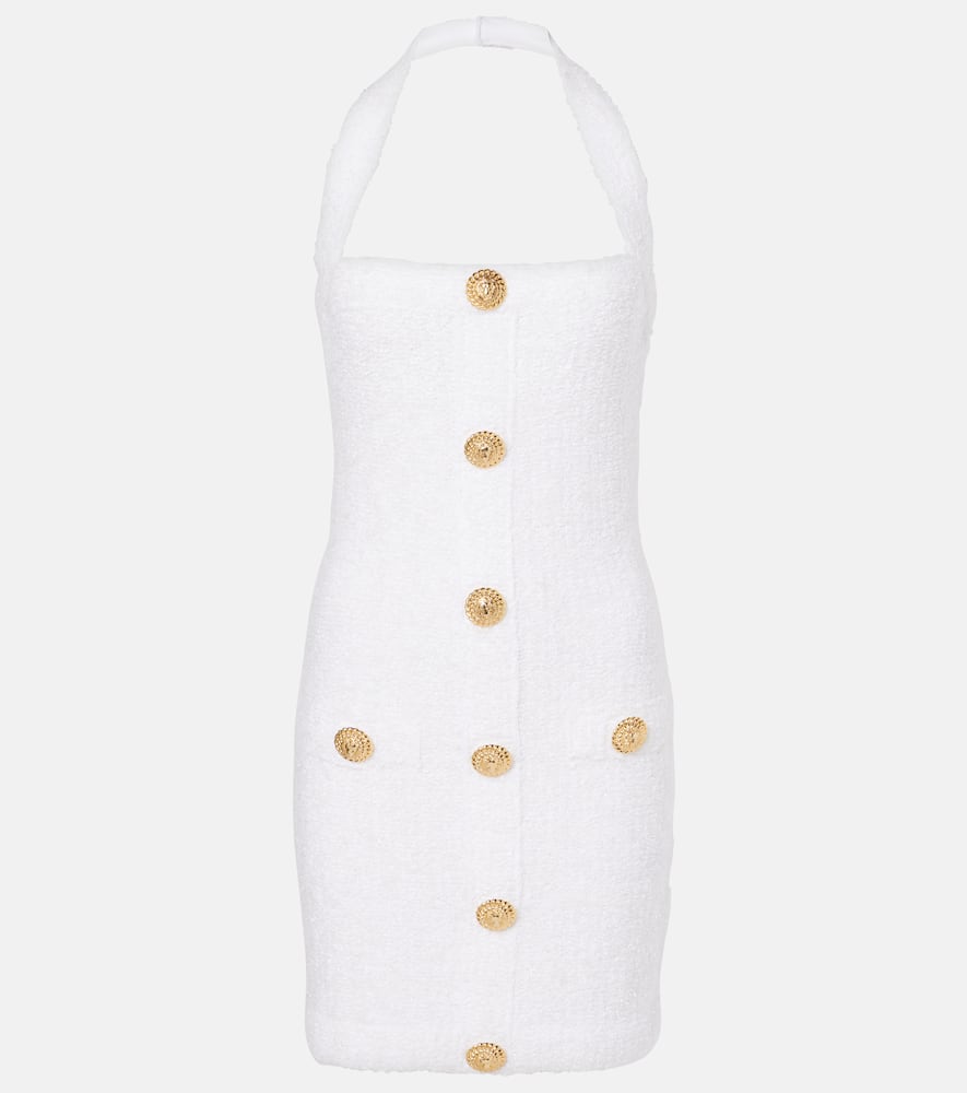 Material: 38% cotton, 36% viscose, 18% polyamide, 8% polyester. Care instructions: do not wash. Made in France. Designer color name: Blanc. Closure: button fastening. Material II: 83% viscose, 17% polyester. Shop the latest Balmain Mini Dresses for women.
