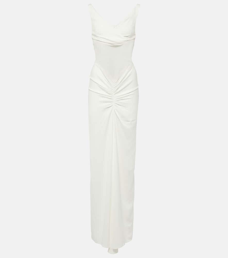 Material: 97% viscose, 3% elastane. Care instructions: dry clean. Made in Vietnam. Designer color name: White. Closure: invisible zipper. Shop the latest Christopher Esber Maxi Dresses for women.