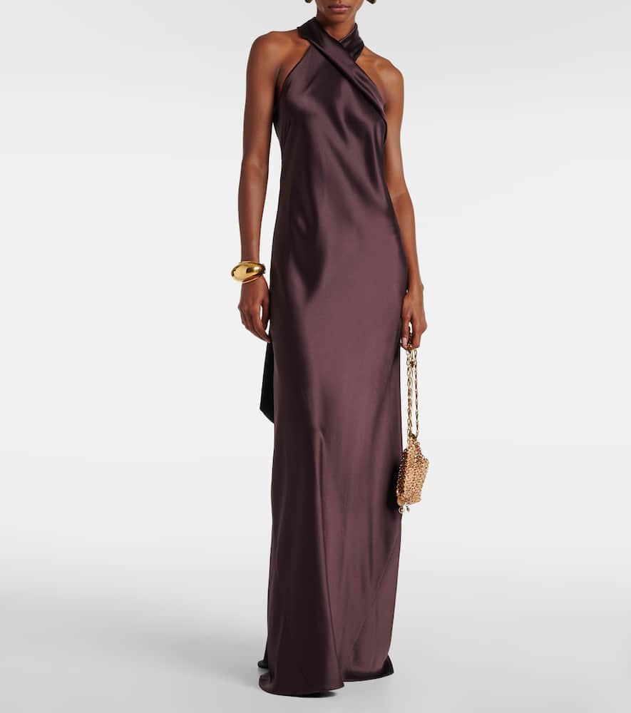 Galvan Pandora halterneck satin maxi dress