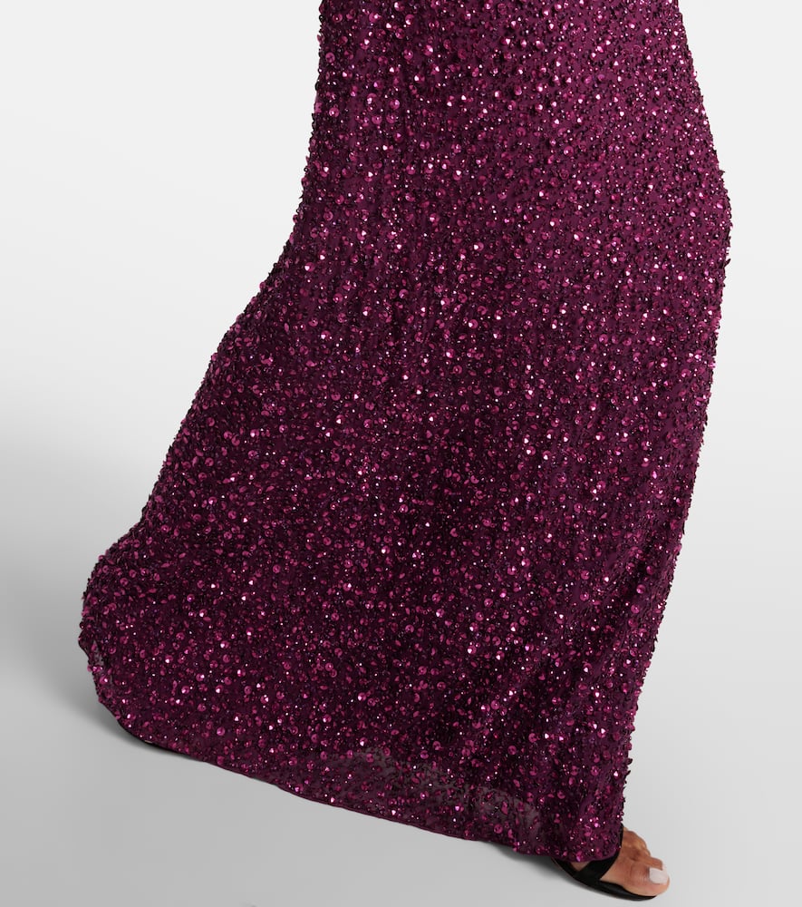 Material: 100% nylon. Care instructions: dry clean. Made in India. Designer color name: Mulberry. Lining: 95% polyester, 5% elastane. Closure: zipper, hook fastening. Shop the latest Jenny Packham Maxi Dresses for women.