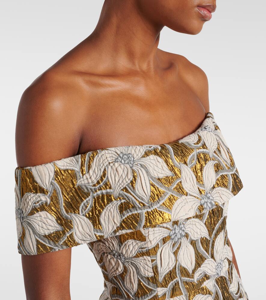 Material: 84% polyester, 16% metallic fibres. Care instructions: dry clean. Made in the USA. Designer color name: Gold Floral. Closure: zipped back. Shop the latest Markarian Maxi Dresses for women.