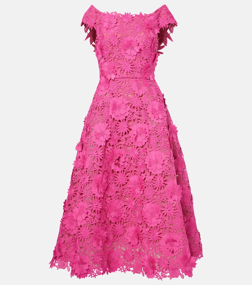 Material: 100% polyester. Care instructions: specialist clean. Made in the USA. Designer color name: Fuchsia. Closure: invisible zipper. Material II: 100% cotton. Lining: 100% silk. Shop the latest Monique Lhuillier Midi Dresses for women.