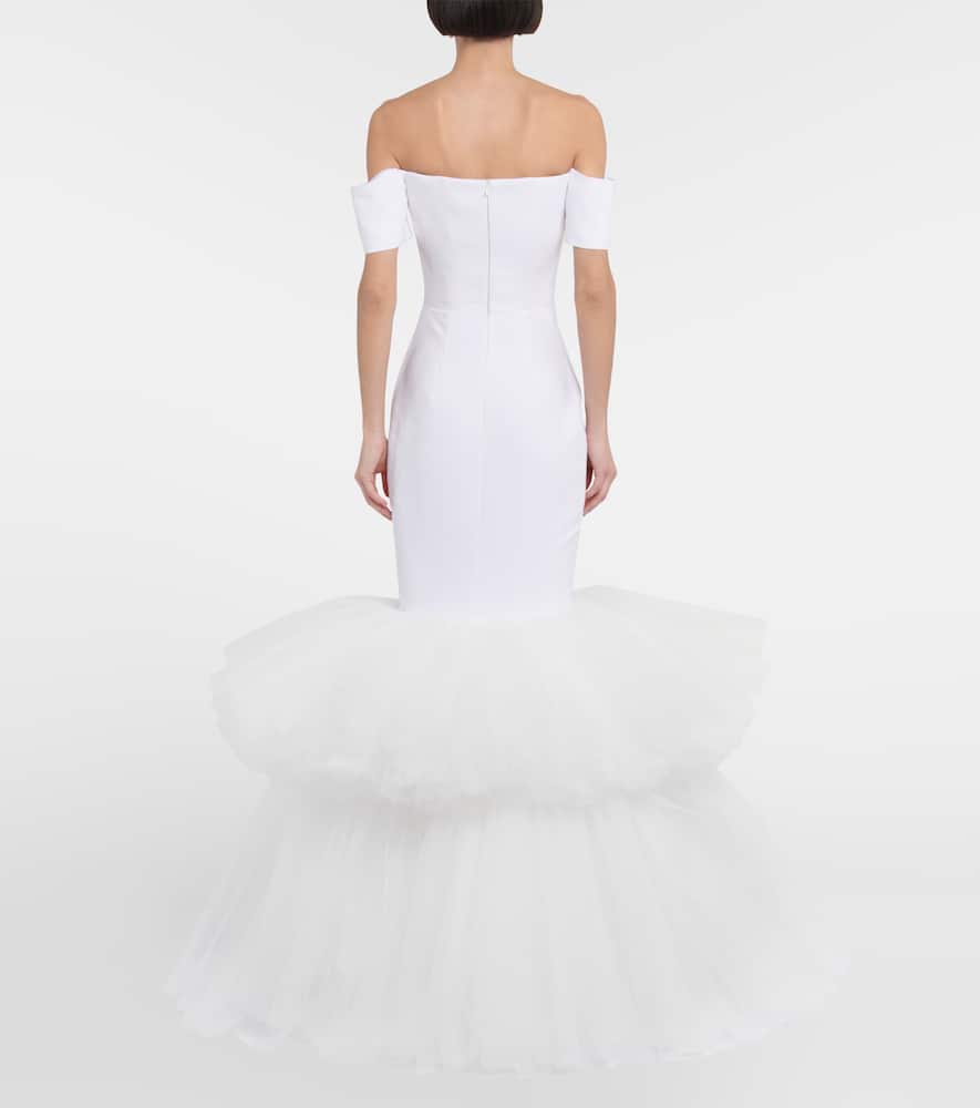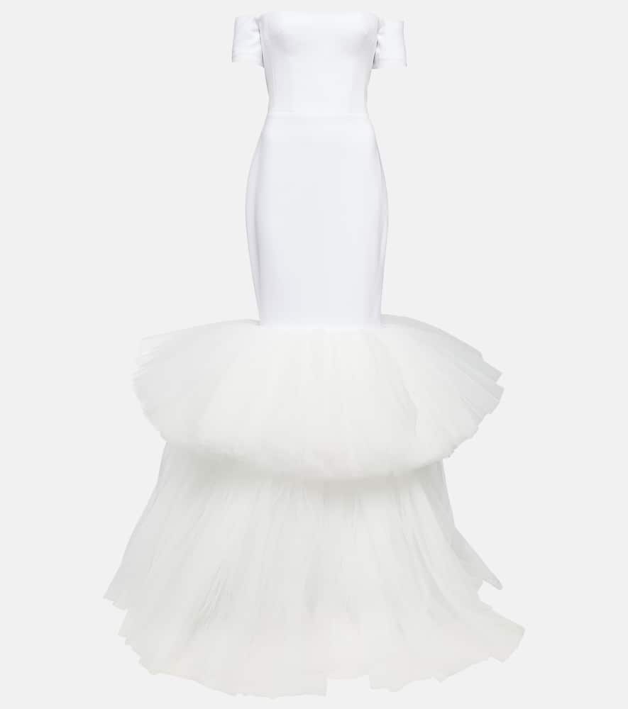 Material: 100% polyester. Care instructions: dry clean. Made in Armenia. Designer color name: White. Padded cups. Lining: 98% polyester, 2% elastane. Closure: zipped back. Shop the latest Rasario Maxi Dresses for women.