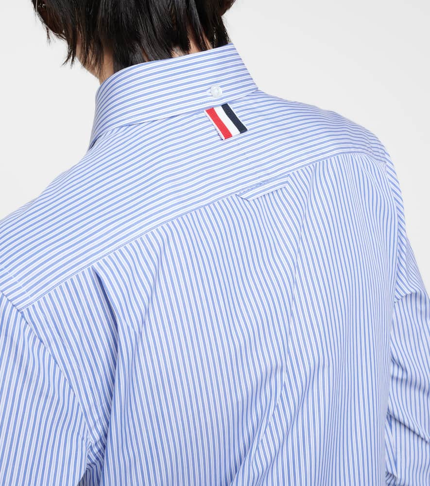 Material: 100% cotton. Care instructions: machine wash at 40 degrees. Made in Italy. Designer color name: Medium Blue. Closure: buttoned front. Pockets: breast pocket. Shop the latest Thom Browne Midi Dresses for women.