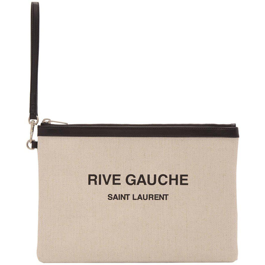 Saint Laurent Off-White Canvas 'Rive Gauche' Pouch