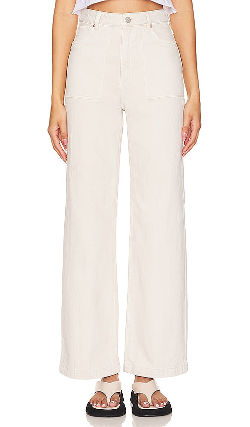 Abrand 94 High & Wide in Ivory. - size 23 (also in 24, 25, 31, 32, 33) Abrand 94 High & Wide in Ivory. - size 23 (also in 24, 25, 31, 32, 33) 99% cotton 1% elastane. Made in China. Machine wash. Zip fly with button closure. 5-pocket styling. Rigid denim. 20 at the knee and 20 at the leg opening. ABRR-WJ7. A41J05. Shop the latest in fashion from Abrand