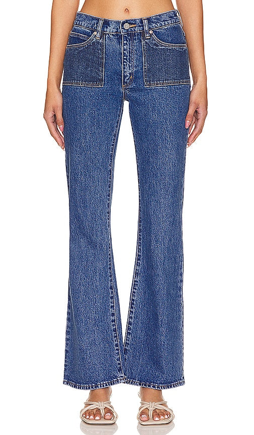 Abrand A 95 Boot Patch Pocket in Blue. - size 23 (also in 24, 25, 26, 27, 28, 29, 30, 31, 32, 33) Abrand A 95 Boot Patch Pocket in Blue. - size 23 (also in 24, 25, 26, 27, 28, 29, 30, 31, 32, 33) 99% cotton 1% elastane. Made in China. Machine wash. Zip fly with button closure. 5-pocket styling. Rigid denim. 16 at the knee breaks to 19 at the leg opening. ABRR-WJ6. A41J57. Shop the latest in fashion from Abrand