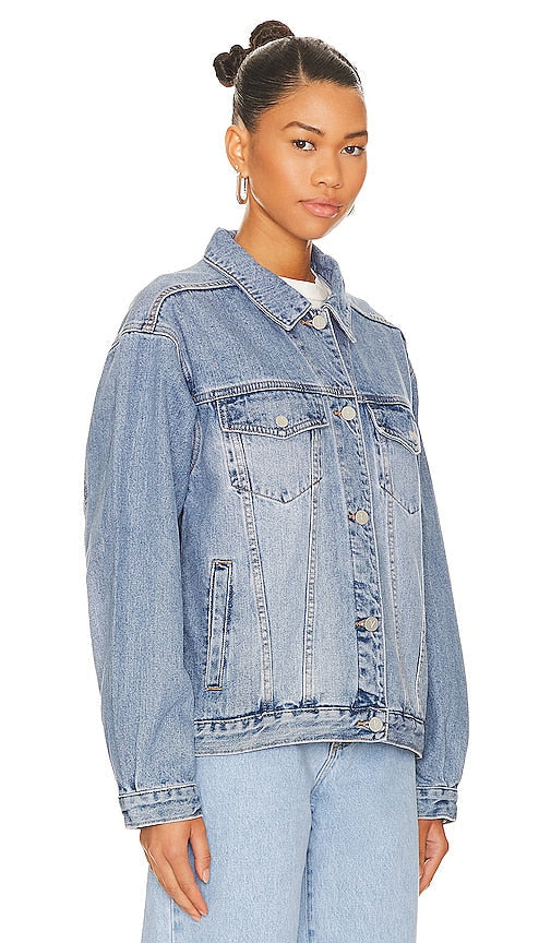 Abrand Sylvie Slouch Jacket in Blue. - size XL (also in XS) Abrand Sylvie Slouch Jacket in Blue. - size XL (also in XS) 100% cotton. Made in China. Machine wash. Front button closure. Breast flap pockets and side slant pockets. Button tabs at hem. Buttoned cuffs. ABRR-WO2. A33A01. Shop the latest in fashion from Abrand