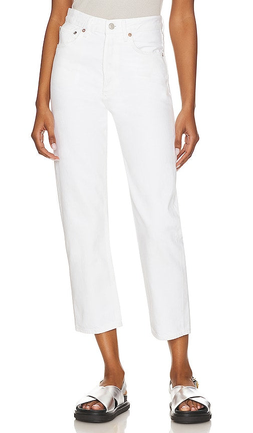 AGOLDE 90's Crop in White. - size 28 (also in 29, 30, 31, 32, 33) AGOLDE 90's Crop in White. - size 28 (also in 29, 30, 31, 32, 33) 100% organic cotton. Made in Turkey. Machine wash. Button fly. 5-pocket design. Midweight denim fabric. 15 at the knee narrows to 12 at the leg opening. AGOL-WJ474. A173B-1183. Based in downtown Los Angeles, AGOLDE is a premium denim label dedicated to highlighting youth culture throughout the decades. Instead of simply replicating your favorite styles from the past, they set out to recreate them with a contemporary approach in mind. The styles may emit an irreverent attitude, but AGOLDE is serious when it comes to quality. They use only the most innovative fabrics sourced from around the world and facilitate all product development to create denim of the highest caliber. Shop the latest in fashion from AGOLDE