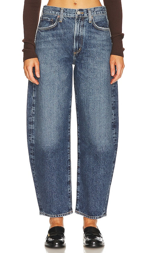 AGOLDE Balloon Wide Leg in Blue. - size 23 (also in 24, 26, 27, 28, 29, 31, 32) AGOLDE Balloon Wide Leg in Blue. - size 23 (also in 24, 26, 27, 28, 29, 31, 32) Make a statement with the AGOLDE Balloon Wide Leg in Control. Elevate your look with a zip fly, button closure, 5-pocket detailing, and a wide-leg design. Embrace comfort and fashion with light fading and whiskering. Redefine your denim experience.. 100% regenerative cotton. Made in Turkey. Machine wash. Zip fly with button closure. 5-pocket styling. Light fading and whiskering. 21 at the knee narrows to 15 at the leg opening. AGOL-WJ540. A9192-1206. Based in downtown Los Angeles, AGOLDE is a premium denim label dedicated to highlighting youth culture throughout the decades. Instead of simply replicating your favorite styles from the past, they set out to recreate them with a contemporary approach in mind. The styles may emit an irreverent attitude, but AGOLDE is serious when it comes to quality. They use only the most innovative fabrics sourced from around the world and facilitate all product development to create denim of the highest caliber. Shop the latest in fashion from AGOLDE