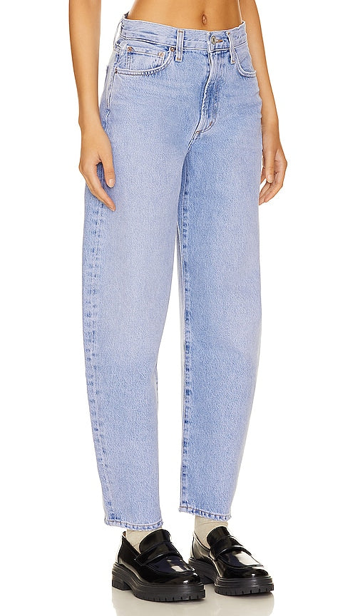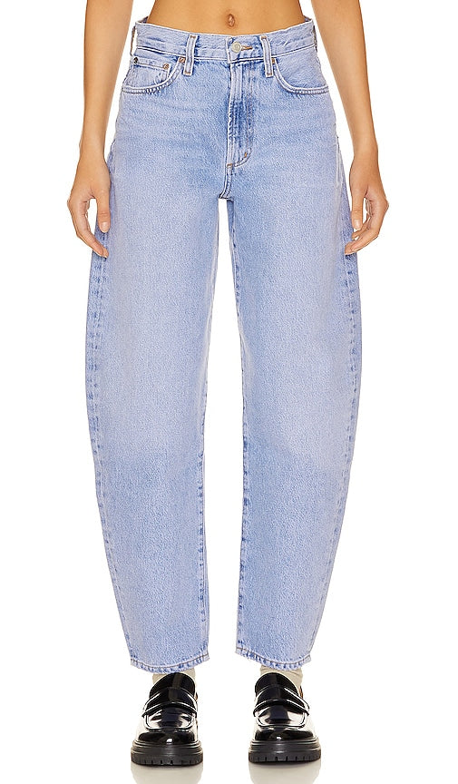 AGOLDE Balloon Wide Leg in Blue. - size 23 (also in 24, 25, 27, 28, 29, 31, 32, 33) AGOLDE Balloon Wide Leg in Blue. - size 23 (also in 24, 25, 27, 28, 29, 31, 32, 33) Make a statement with the AGOLDE Balloon Wide Leg in Conflict. Elevate your look with a zip fly, button closure, 5-pocket detailing, and a wide-leg design. Embrace comfort and fashion with light fading and whiskering. Redefine your denim experience.. 100% regenerative cotton. Made in Turkey. Machine wash. Zip fly with button closure. 5-pocket styling. Light fading and whiskering. 22 at the knee narrows to 15 at the leg opening. AGOL-WJ543. A9192-1141. Based in downtown Los Angeles, AGOLDE is a premium denim label dedicated to highlighting youth culture throughout the decades. Instead of simply replicating your favorite styles from the past, they set out to recreate them with a contemporary approach in mind. The styles may emit an irreverent attitude, but AGOLDE is serious when it comes to quality. They use only the most innovative fabrics sourced from around the world and facilitate all product development to create denim of the highest caliber. Shop the latest in fashion from AGOLDE