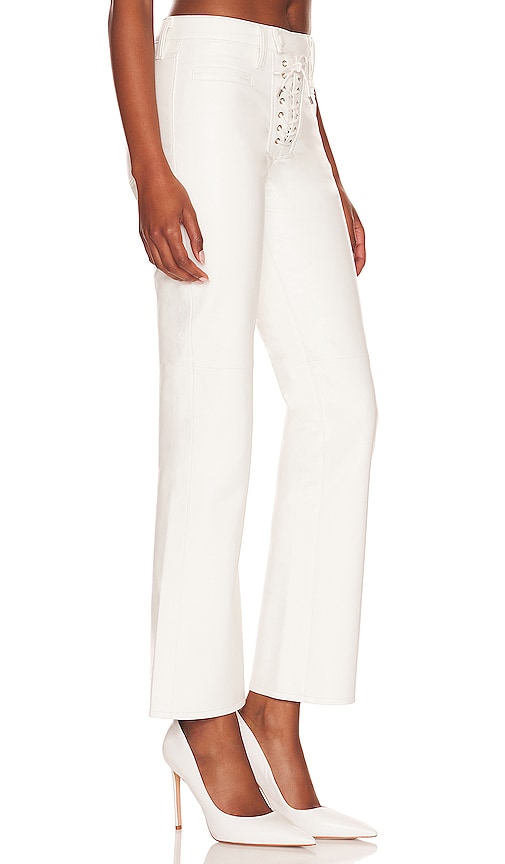 AGOLDE Finley in White. - size 30 (also in 31, 32, 33, 34) AGOLDE Finley in White. - size 30 (also in 31, 32, 33, 34) 50% recycled leather 30% polyurethane 10% viscose 10% polyester. Made in USA. Dry clean only. Lace-up front with button closure. 4-pocket styling. Faux leather fabric. 16 at the knee and 16 at the leg opening. AGOL-WJ442. A9085-1285. Based in downtown Los Angeles, AGOLDE is a premium denim label dedicated to highlighting youth culture throughout the decades. Instead of simply replicating your favorite styles from the past, they set out to recreate them with a contemporary approach in mind. The styles may emit an irreverent attitude, but AGOLDE is serious when it comes to quality. They use only the most innovative fabrics sourced from around the world and facilitate all product development to create denim of the highest caliber. Shop the latest in fashion from AGOLDE