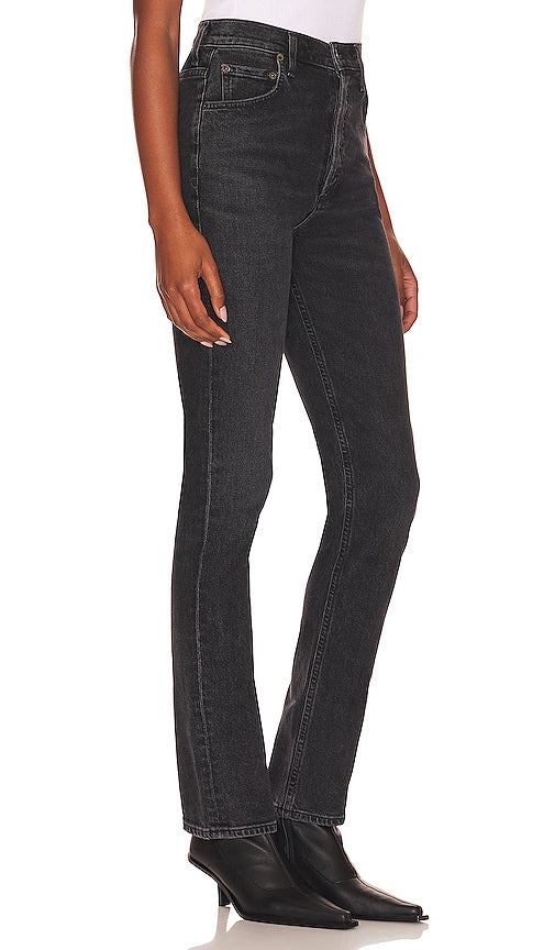 AGOLDE Freya High Rise Slim in Black. - size 23 (also in 24, 32, 33, 34) AGOLDE Freya High Rise Slim in Black. - size 23 (also in 24, 32, 33, 34) 99% organic cotton 1% elastane. Made in USA. Machine wash. Button fly. 5-pocket styling. Light fading and whiskering. 15 at the knee narrows to 13 at the leg opening. AGOL-WJ435. A9074-1372. Based in downtown Los Angeles, AGOLDE is a premium denim label dedicated to highlighting youth culture throughout the decades. Instead of simply replicating your favorite styles from the past, they set out to recreate them with a contemporary approach in mind. The styles may emit an irreverent attitude, but AGOLDE is serious when it comes to quality. They use only the most innovative fabrics sourced from around the world and facilitate all product development to create denim of the highest caliber. Shop the latest in fashion from AGOLDE