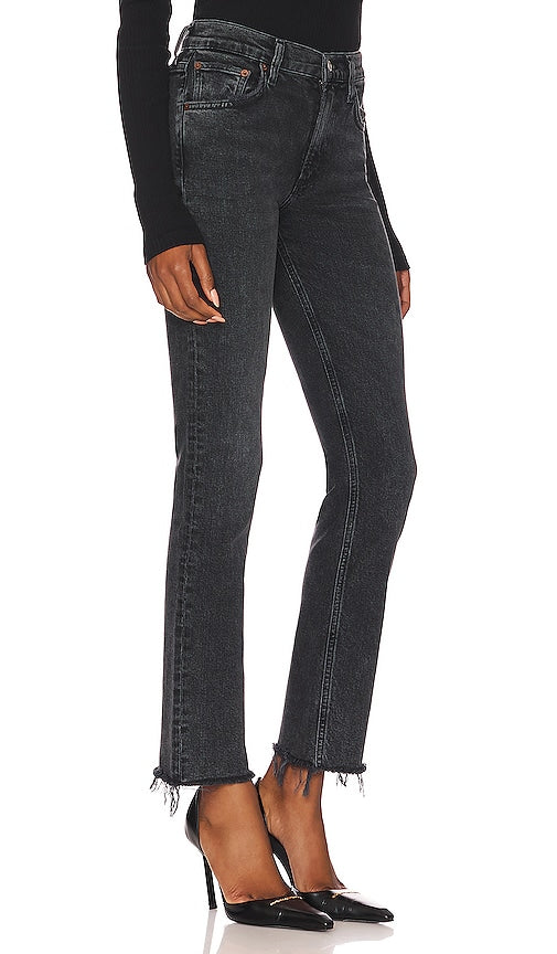 AGOLDE Lyle Low Rise Slim in Black. - size 32 (also in 33) AGOLDE Lyle Low Rise Slim in Black. - size 32 (also in 33) 99% organic cotton 1% elastane. Made in Turkey. Machine wash. Zip fly with button closure. 5-pocket styling. Light whiskering detail. Frayed hem. 14 at the knee narrows to 12.5 at the leg opening. AGOL-WJ427. A9023B-1372. Based in downtown Los Angeles, AGOLDE is a premium denim label dedicated to highlighting youth culture throughout the decades. Instead of simply replicating your favorite styles from the past, they set out to recreate them with a contemporary approach in mind. The styles may emit an irreverent attitude, but AGOLDE is serious when it comes to quality. They use only the most innovative fabrics sourced from around the world and facilitate all product development to create denim of the highest caliber. Shop the latest in fashion from AGOLDE