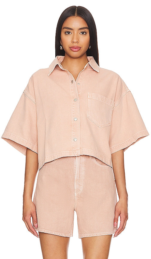 AGOLDE Rona Box Shirt in Pink. - size M (also in L, S, XL, XS) AGOLDE Rona Box Shirt in Pink. - size M (also in L, S, XL, XS) 60% organic cotton 40% refiber lyocell. Made in Turkey. Machine wash. Front button closure. Breast slip pocket. Item not sold as a set. AGOL-WS236. A7217-1500. Based in downtown Los Angeles, AGOLDE is a premium denim label dedicated to highlighting youth culture throughout the decades. Instead of simply replicating your favorite styles from the past, they set out to recreate them with a contemporary approach in mind. The styles may emit an irreverent attitude, but AGOLDE is serious when it comes to quality. They use only the most innovative fabrics sourced from around the world and facilitate all product development to create denim of the highest caliber. Shop the latest in fashion from AGOLDE
