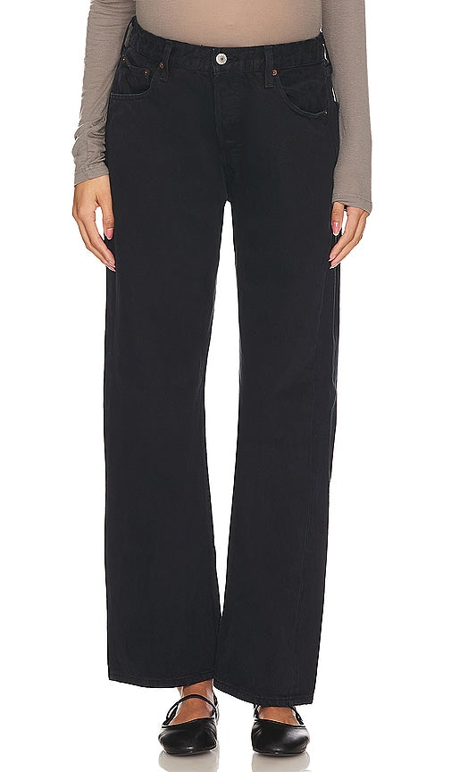 aligrace Maternity Baggy Customs in Black. - size L (also in S, XL/1X, XS) aligrace Maternity Baggy Customs in Black. - size L (also in S, XL/1X, XS) 100% cotton. Made in USA. Machine wash. Button fly with cinched elastic waist. 5-pocket styling. Structured denim fabric The elastic band will allow for up to 4 of room for belly growth. Due to the use of reclaimed vintage fabrics, details and colors vary throughout to ensure that each piece is uniquely its own.. 18.5 at the knee narrows to 18 at the leg opening. AGRA-WJ14. MATERNITYBAGGY. Founded in 2018 by Ali Grace and currently located in San Diego, aligrace offers a line of high quality custom vintage Levi's that embraces sustainable practices and strives for size inclusivity by keeping every size in mind. Ali wanted to give women of all sizes a platform to shop with confidence after dealing with her own struggles to find the right denim. Aligrace continues to remind each individual that you don't have to customize your body to your clothes for the perfect fit. The only thing more timeless than the perfect pair of Levi's will be the confidence you feel in your aligrace customs. Aligrace not only tailors your favorite styles, but re-creates your every detail down to the wash, fit and distressing - making each pair a timeless wardrobe staple. Shop the latest in fashion from aligrace