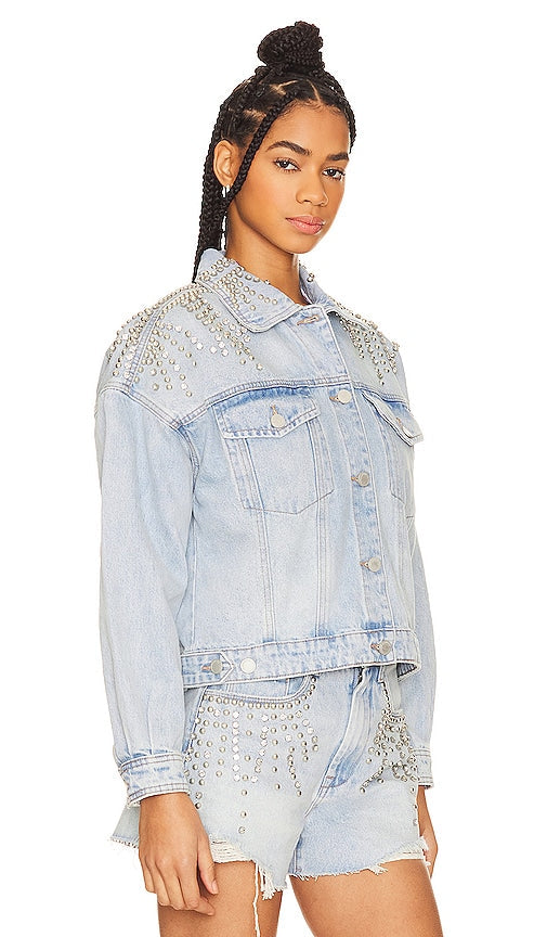 BLANKNYC Rhinestone Jacket in Denim-Light. - size L (also in M, S, XS) BLANKNYC Rhinestone Jacket in Denim-Light. - size L (also in M, S, XS) Cotton blend. Imported. Machine wash recommended. Front button closure. Breast flap pockets with button closure. Button cuffs. Silver-tone studs and crystal embellishments. Midweight denim fabric. BLAN-WO393. 84TJ5113. Since exploding onto the scene in 2007 with the signature Studded Skinny Classique jeans, [BLANKNYC] has been creating approachable clothing in obsession-worthy fits, fabrics and design. The Manhattan-born brand couples aggressively modern silhouettes with the integrity of premium quality: a mash-up of stretch denim, vegan leather, plush knits and industrial hardware transform minimalist basics into runway relevance. Shop the latest in fashion from BLANKNYC