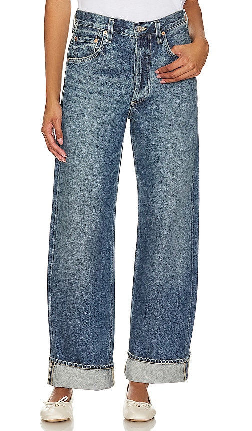 Citizens of Humanity Ayla Baggy Cuffed Crop in Blue. - size 26 (also in 27, 29, 31) Citizens of Humanity Ayla Baggy Cuffed Crop in Blue. - size 26 (also in 27, 29, 31) 100% organic cotton. Made in USA. Machine wash. Button fly. 5-pocket styling. Fading and whiskering at front. Structured denim fabric. 19.5 at the knee narrows to 18 at the leg opening. CITI-WJ1780. 2053-3041. Established in 2003, Citizens of Humanity is renowned in the fashion industry for its pioneering approach to premium denim. With an uncompromising focus on fit, fabric and wash. Citizens of Humanity jeans are the ultimate luxury denim. Shop the latest in fashion from Citizens of Humanity