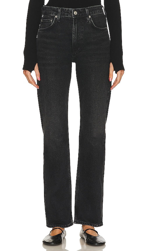 Citizens of Humanity Zurie Straight Leg in Black. - size 24 (also in 31, 33) Citizens of Humanity Zurie Straight Leg in Black. - size 24 (also in 31, 33) 98% cotton 2% polyurethane. Made in Turkey. Machine wash. Zip fly with button closure. 5-pocket design. Light whiskering and faded stretch denim fabric. 18 at the knee narrows to 14 at the leg opening. CITI-WJ1829. 2128-3010. Established in 2003, Citizens of Humanity is renowned in the fashion industry for its pioneering approach to premium denim. With an uncompromising focus on fit, fabric and wash. Citizens of Humanity jeans are the ultimate luxury denim. Shop the latest in fashion from Citizens of Humanity