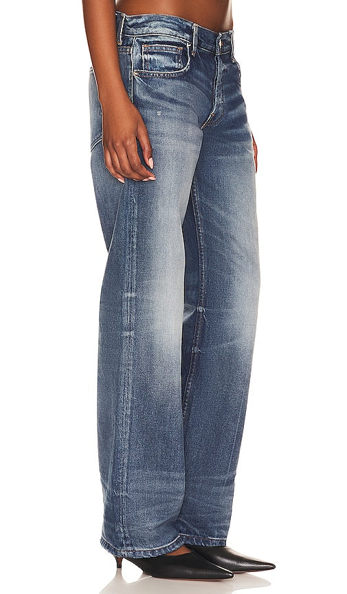 EB Denim Low Rise Baggy in Blue. - size 25 (also in 27, 29, 30, 33) EB Denim Low Rise Baggy in Blue. - size 25 (also in 27, 29, 30, 33) 100% cotton. Made in USA. Machine wash. Button fly. 5-pocket styling. Light whiskering detail. Structured denim fabric. 18 at the knee and 18 at the leg opening. EBDR-WJ39. LOWRISEBAGGY. EB Denim founder Elena Bonvicini discovered a love for thrifting while spending time in the Midwest with her vintage-loving grandmother. Taking notice of the surplus of men's jeans and lack of women's, Elena began to buy men's Levi's and upcycle them into unique fits for women. Elena started selling these productions out of her high school locker, and thus EB Denim was born. Since then, the brand has evolved beyond denim basics to include dresses and blouses made from recycled scarves. Each piece is one of a kind, using handpicked, reconstructed pieces, and incorporating excess materials into other designs to ensure zero waste. Denim may never go out of style, but Bonvicini's label has upped the game by offering a stunning, sustainable, and modern take on classic looks. Unique cuts and patchwork designs make EB Denim the go-to brand for It Girls everywhere. Shop the latest in fashion from EB Denim