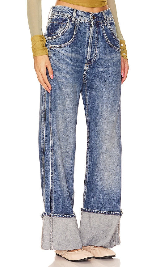 Free People x Revolve x We The Free Final Countdown Bf Jean in Blue. - size 27 (also in 29) Free People x Revolve x We The Free Final Countdown Bf Jean in Blue. - size 27 (also in 29) Channel your inner cool girl with the Free People x Revolve Final Countdown Bf Jean in Zero. This casual denim piece offers a relaxed wide leg and a folded hem. Perfectly curated for an effortlessly chill and everyday stylish look.. 59% cotton 41% lyocell. Made in Egypt. Machine wash. Button fly. 7-pocket styling. Cuffed hem. 22 at the knee and 22 at the leg opening. FREE-WJ295. OB1797482. Free People invokes a spirit of femininity and creativity. Throughout their line of sweaters, tees, dresses and more, each piece incorporates a high level of quality and originality that reflects their adventurous it girl. With all that's constricting in the world today, Free People says your clothes don't have to be. Be yourself, be creative, be free. Shop the latest in fashion from Free People