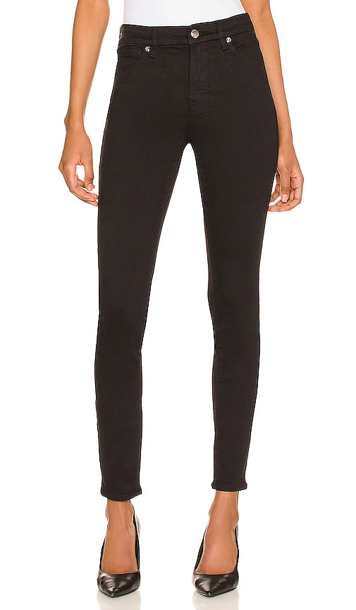 Good American Good Legs in Black. - size 0 (also in 00, 10, 2, 22, 24, 4, 6, 8) Good American Good Legs in Black. - size 0 (also in 00, 10, 2, 22, 24, 4, 6, 8) 81% cotton 10% recycled cotton 6% elasterell-p 3% elastane. Made in Turkey. Machine wash. Zip fly with button closure. 5-pocket styling. Stretch fit denim fabric. 12.5 at the knee narrows to 10 at the leg opening. GAME-WJ2. GAGL001. Good American is made by women, for women. All bodies. All Sizes. No compromises. In 2016, entrepreneurs Emma Grede and Khloe Kardashian launched their now-iconic denim label with the intention of redefining contemporary fashion through innovative and inclusive designs. With curves as their cause, Good American offers eco-friendly quality and style in every size, empowering women to celebrate their bodies with sexy confidence. Shop the latest in fashion from Good American