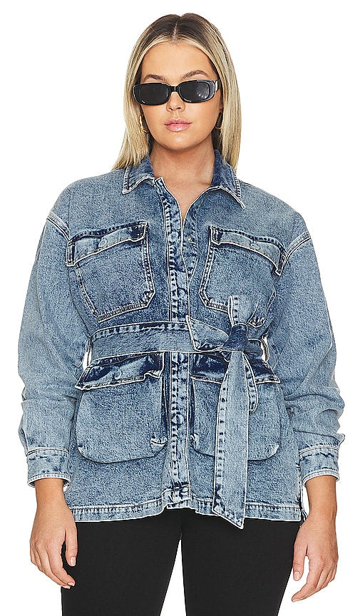 Good American Uniform Cargo Jacket in Blue. - size L/XL (also in S/M, XXS/XS) Good American Uniform Cargo Jacket in Blue. - size L/XL (also in S/M, XXS/XS) 79% cotton 20% pre-consumer recycled cotton 1% elastane. Made in Turkey. Machine wash. Front button closure. Four bodice button pockets. Button cuffs. Rigid denim. GAME-WO30. GDCJ235. Good American is made by women, for women. All bodies. All Sizes. No compromises. In 2016, entrepreneurs Emma Grede and Khloe Kardashian launched their now-iconic denim label with the intention of redefining contemporary fashion through innovative and inclusive designs. With curves as their cause, Good American offers eco-friendly quality and style in every size, empowering women to celebrate their bodies with sexy confidence. Shop the latest in fashion from Good American