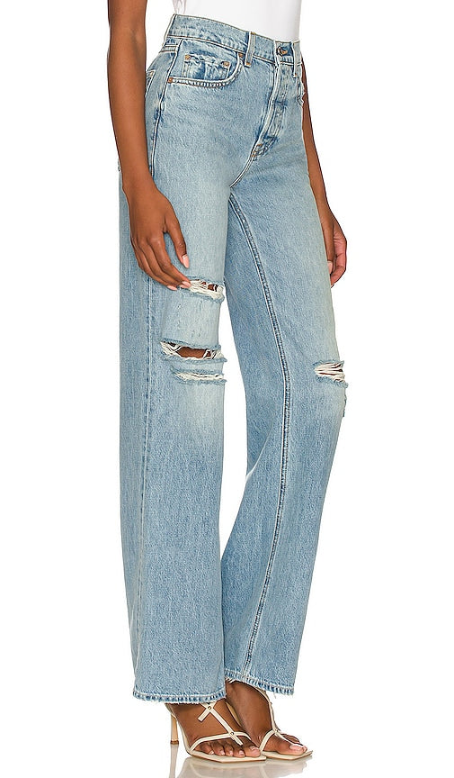 GRLFRND Brooklyn High Rise Straight in Blue. - size 31 (also in 32) GRLFRND Brooklyn High Rise Straight in Blue. - size 31 (also in 32) 80% cotton 20% post consumer recycled cotton. Made in USA. Machine wash. Button fly. 5-pocket design. Faded wash and destroyed detail. 18 at the knee and 18 at the leg opening. GRLR-WJ554. GF45179871828. Introducing your new GRLFRND. Based in LA, GRLFRND Denim crafts pieces focused on fit and individuality, blending unique details with vintage silhouettes. The premium denim label reimagines everyday staples with a contemporary vision, drawing inspiration from enduring styles and comfort. Bold, versatile, and unexpected - a fresh approach to classic denim. Explore the collection featuring remarkable ready-to-wear pieces designed with premium qualities and directional silhouettes to perfectly complement the denim Shop the latest in fashion from GRLFRND