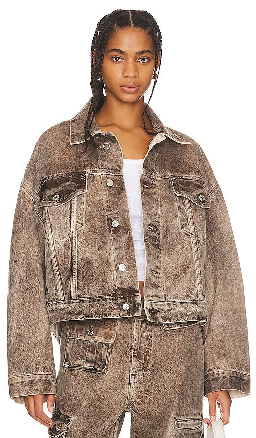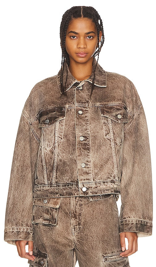 GRLFRND Christi in Brown. - size L (also in M, S, XL, XS, XXS) GRLFRND Christi in Brown. - size L (also in M, S, XL, XS, XXS) Channel desert chic with the GRLFRND Christi in Rolling Loud jacket. Giving you a relaxed and laid-back vibe, this outerwear piece is perfect for music festivals and concerts with its vintage-inspired wash that adds a touch of effortless cool, perfect for pulling together your festival ready fit. . Cotton blend. Imported. Machine wash recommended. Front button closure. Button cuffs. Breast flap pockets. Item not sold as set. GRLR-WO73. GF46759961990. Introducing your new GRLFRND. Based in LA, GRLFRND Denim crafts pieces focused on fit and individuality, blending unique details with vintage silhouettes. The premium denim label reimagines everyday staples with a contemporary vision, drawing inspiration from enduring styles and comfort. Bold, versatile, and unexpected - a fresh approach to classic denim. Explore the collection featuring remarkable ready-to-wear pieces designed with premium qualities and directional silhouettes to perfectly complement the denim Shop the latest in fashion from GRLFRND