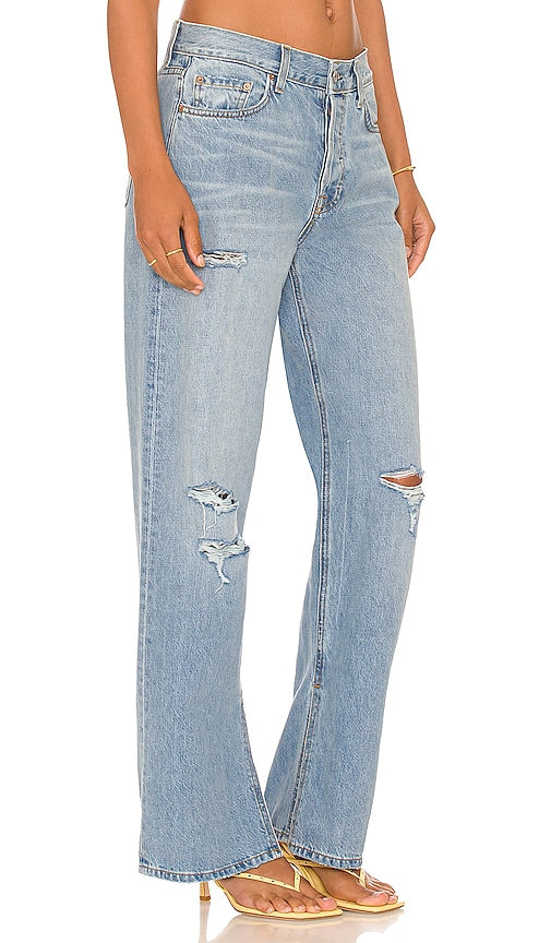 GRLFRND Liya Low Rise Boyfriend in Blue. - size 27 (also in 28, 31) GRLFRND Liya Low Rise Boyfriend in Blue. - size 27 (also in 28, 31) 80% cotton 20% post consumer recycled cotton. Made in USA. Machine wash. Button fly. 5-pocket design. Intentionally distressed areas. Light whiskering and fading detail Split cuffs. 18 at the knee and 18 at the leg opening. GRLR-WJ535. GF45479871778. Introducing your new GRLFRND. Based in LA, GRLFRND Denim crafts pieces focused on fit and individuality, blending unique details with vintage silhouettes. The premium denim label reimagines everyday staples with a contemporary vision, drawing inspiration from enduring styles and comfort. Bold, versatile, and unexpected - a fresh approach to classic denim. Explore the collection featuring remarkable ready-to-wear pieces designed with premium qualities and directional silhouettes to perfectly complement the denim Shop the latest in fashion from GRLFRND