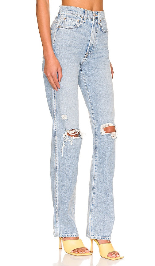 GRLFRND Sara Super High Rise Slim Straight in Blue