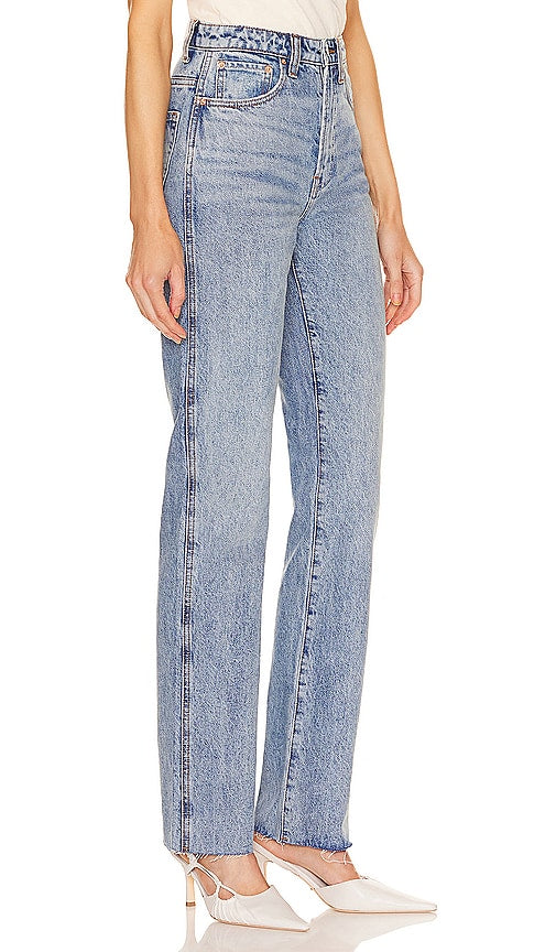 GRLFRND Sara Super High Rise Straight in Blue. - size 23 (also in 24, 25, 30, 31, 32) GRLFRND Sara Super High Rise Straight in Blue. - size 23 (also in 24, 25, 30, 31, 32) 100% cotton. Made in China. Machine wash. Zip fly with button closure. 5-pocket design. Light whiskering and fading detail. Frayed raw-cut hem. 15 at the knee narrows to 13 at the leg opening. GRLR-WJ628. GF46478501768. True to the iconic Supermodels of the 90s, GRLFRND denim pushes the limits of basics to a new level of cool. Inspired by the Cindy's and Naomi's of the world, the line is sleek with an edge and always concerned with a flawless fit. Shop the latest in fashion from GRLFRND