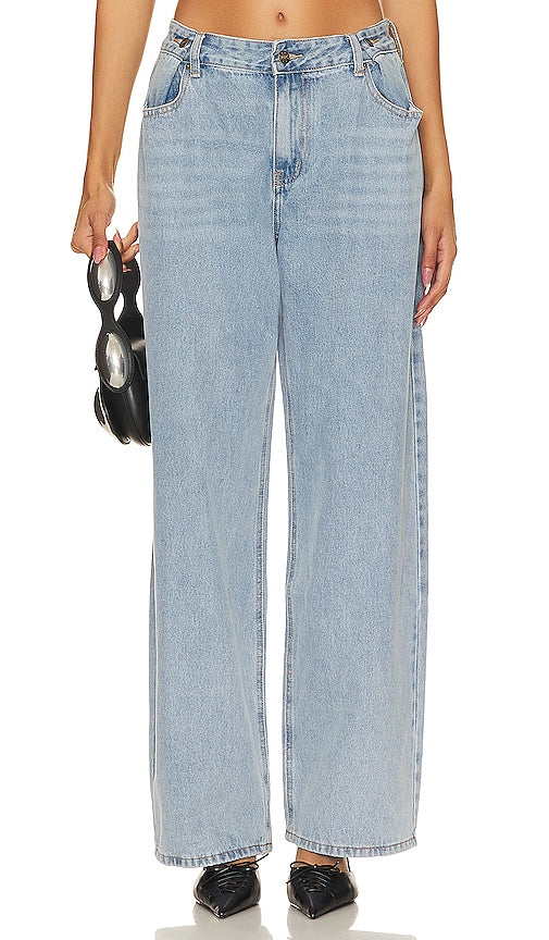 LIONESS She's All That Wide Leg in Blue. - size L (also in M, S) LIONESS She's All That Wide Leg in Blue. - size L (also in M, S) 95% cotton 5% polyester. Made in China. Hand wash. Zip fly with button closure. 4-pocket styling. Button tabs at hips. Structured denim fabric. 22 at the knee narrows to 20 at the leg opening. LIOR-WJ4. LB678-2311. Australian brand Lioness balances luxurious neutral hues with deep tonal shades on intricate shapes. With the ultimate model off duty feel, the aesthetic is fueled by music, art, love and exploration. With continued success in high street wear Lioness slays at confident silhouettes, fem cut out dresses and rompers you'll never want to take off. Since opening its doors in 2009, Lioness has become a must have destination for IT girls around the world with a host of fans among celebrities and fashion bloggers. Shop the latest in fashion from LIONESS