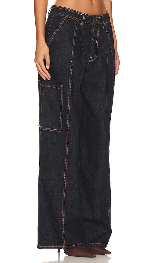 LIONESS Veneda Baggy Jean in Blue. - size M (also in S) LIONESS Veneda Baggy Jean in Blue. - size M (also in S) 95% cotton 5% polyester. Made in China. Hand wash. Zip fly with button closure. 6-pocket styling includes two cargo pockets. Rigid denim fabric with pleating and darting detail. 25 at the knee and 25 at the leg opening. LIOR-WJ1. LB660-2309. Australian brand Lioness balances luxurious neutral hues with deep tonal shades on intricate shapes. With the ultimate model off duty feel, the aesthetic is fueled by music, art, love and exploration. With continued success in high street wear Lioness slays at confident silhouettes, fem cut out dresses and rompers you'll never want to take off. Since opening its doors in 2009, Lioness has become a must have destination for IT girls around the world with a host of fans among celebrities and fashion bloggers. Shop the latest in fashion from LIONESS
