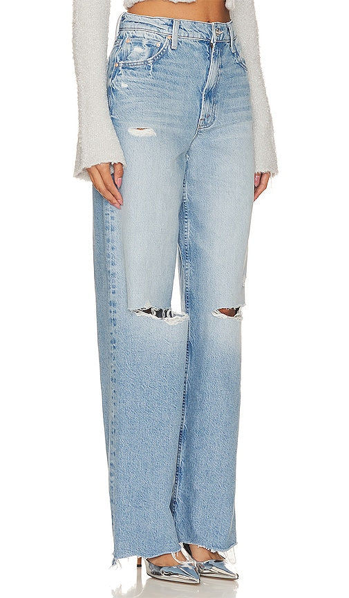 MOTHER High Waisted Spinner Zip Heel Chew in Blue. - size 26 (also in 27, 28) MOTHER High Waisted Spinner Zip Heel Chew in Blue. - size 26 (also in 27, 28) 100% cotton. Made in USA. Machine wash. Zip fly with button closure. 5-pocket design. Intentionally destroyed areas and frayed raw-cut hem. Light whiskering and fading detail. 17 at the knee and 17 at the leg opening. MOTH-WJ1472. 10458-1085. Los Angeles-based denim vets Tim Kaeding and Lela Tillem debuted MOTHER in the fall of 2010. Their collection offers a stellar fit, ultra comfort, and denim made from fabrics that are soft, stretchy, and cashmere-like. Expect your favorite styles reinvented along with bell bottoms and not-too-skinny skinnies. Shop the latest in fashion from MOTHER