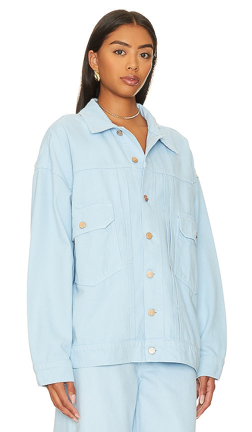 MOTHER SNACKS! The Big Bite Jacket in Baby Blue. - size L (also in M, S, XL, XS) MOTHER SNACKS! The Big Bite Jacket in Baby Blue. - size L (also in M, S, XL, XS) 60% cotton 40% lyocell. Made in USA. Machine wash. Front button closure. Breast flap pocket with button closure. Banded buttoned cuffs. Structured denim fabric. Item not sold as a set. MOTH-WO130. 30491-1359. Los Angeles-based denim vets Tim Kaeding and Lela Tillem debuted MOTHER in the fall of 2010. Their collection offers a stellar fit, ultra comfort, and denim made from fabrics that are soft, stretchy, and cashmere-like. Expect your favorite styles reinvented along with bell bottoms and not-too-skinny skinnies. Shop the latest in fashion from MOTHER