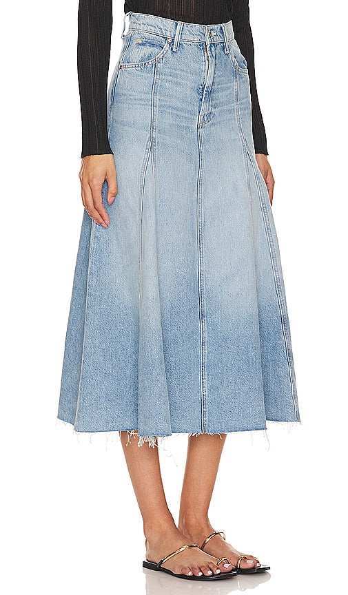 MOTHER The Full Swing Midi Skirt in Blue. - size 25 (also in 27) MOTHER The Full Swing Midi Skirt in Blue. - size 25 (also in 27) 100% cotton. Made in USA. Machine wash. Unlined. Zip fly with button closure. 3-pocket design. Light whiskering and fading detail Frayed hem. Skirt measures approx 33 in length. MOTH-WQ105. 9755-1085. Los Angeles-based denim vets Tim Kaeding and Lela Tillem debuted MOTHER in the fall of 2010. Their collection offers a stellar fit, ultra comfort, and denim made from fabrics that are soft, stretchy, and cashmere-like. Expect your favorite styles reinvented along with bell bottoms and not-too-skinny skinnies. Shop the latest in fashion from MOTHER