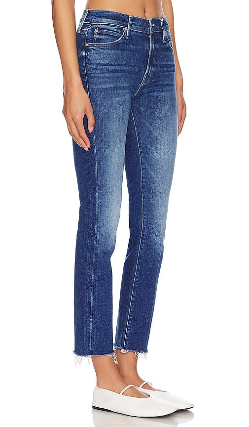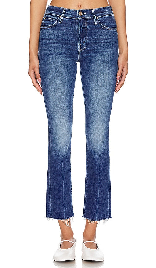 MOTHER The Rascal Ankle Fray in Blue. - size 24 (also in 25, 26, 27, 28, 29, 30, 32) MOTHER The Rascal Ankle Fray in Blue. - size 24 (also in 25, 26, 27, 28, 29, 30, 32) 78% cotton 16% modal 4% polyester 2% elastane. Made in USA. Machine wash. Zip fly with button closure. 5-pocket design. Heavy whiskering and fading detail. Frayed raw-cut hem. 12 at the knee narrows to 10 at the leg opening. MOTH-WJ1559. 1326-1008. Los Angeles-based denim vets Tim Kaeding and Lela Tillem debuted MOTHER in the fall of 2010. Their collection offers a stellar fit, ultra comfort, and denim made from fabrics that are soft, stretchy, and cashmere-like. Expect your favorite styles reinvented along with bell bottoms and not-too-skinny skinnies. Shop the latest in fashion from MOTHER