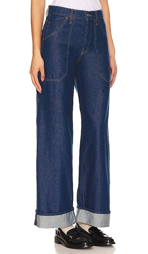 MOTHER The Smoothie Carpenter Sneak in Blue. - size 23 (also in 24, 25, 26, 27, 28, 29, 30, 32) MOTHER The Smoothie Carpenter Sneak in Blue. - size 23 (also in 24, 25, 26, 27, 28, 29, 30, 32) 41% recycled cotton 41% lyocell 18% cotton. Made in USA. Machine wash. Button fly. 5-pocket styling. Rigid denim fabric with rolled ankle. 21 at the knee narrows to 19 at the leg opening. MOTH-WJ1537. 10588-1321. Los Angeles-based denim vets Tim Kaeding and Lela Tillem debuted MOTHER in the fall of 2010. Their collection offers a stellar fit, ultra comfort, and denim made from fabrics that are soft, stretchy, and cashmere-like. Expect your favorite styles reinvented along with bell bottoms and not-too-skinny skinnies. Shop the latest in fashion from MOTHER