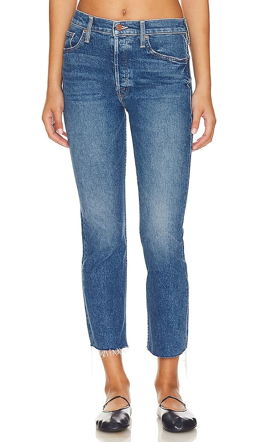 MOTHER The Tomcat Ankle Fray in Blue. - size 23 (also in 24, 25, 26, 27, 28, 31) MOTHER The Tomcat Ankle Fray in Blue. - size 23 (also in 24, 25, 26, 27, 28, 31) 62% cotton 37% lyocell 1% elastane. Made in USA. Machine wash. Button fly. 5-pocket design. Light whiskering and fading detail. Frayed raw-cut hem. 13 at the knee narrows to 12 at the leg opening. MOTH-WJ1478. 1684-1043. Los Angeles-based denim vets Tim Kaeding and Lela Tillem debuted MOTHER in the fall of 2010. Their collection offers a stellar fit, ultra comfort, and denim made from fabrics that are soft, stretchy, and cashmere-like. Expect your favorite styles reinvented along with bell bottoms and not-too-skinny skinnies. Shop the latest in fashion from MOTHER