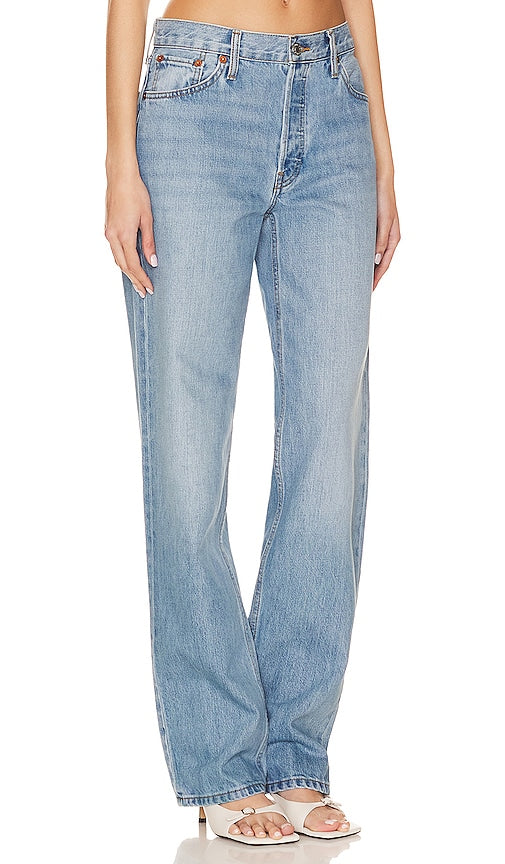 RE/DONE Originals The Long Loose in Blue. - size 26 (also in 27, 28, 30) RE/DONE Originals The Long Loose in Blue. - size 26 (also in 27, 28, 30) 100% cotton. Made in Mexico. Machine wash. Button fly. 5-pocket design. Faded wash and light distressing. 19 at the knee narrows to 16 at the leg opening. REDR-WJ272. 148-03WLOSLNG. Iconic. Responsible. Individual. Launched in Los Angeles in 2014 by industry veterans Sean Barron and Jamie Mazur, RE/DONE started with a simple idea of taking the old and making it new again. This is present in everything RE/DONE does from upcycling vintage Levi's to reimagining vintage Hanes tees with recycled fabric. Today, they continue to honor their exclusive heritage partnerships, while expanding their offering to also include recycled knits, upcycled ready to wear, and sneakers handmade in Italy by expert artisans. As of 2020, RE/DONE has upcycled nearly 100,000 pairs of vintage Levis. Shop the latest in fashion from RE/DONE