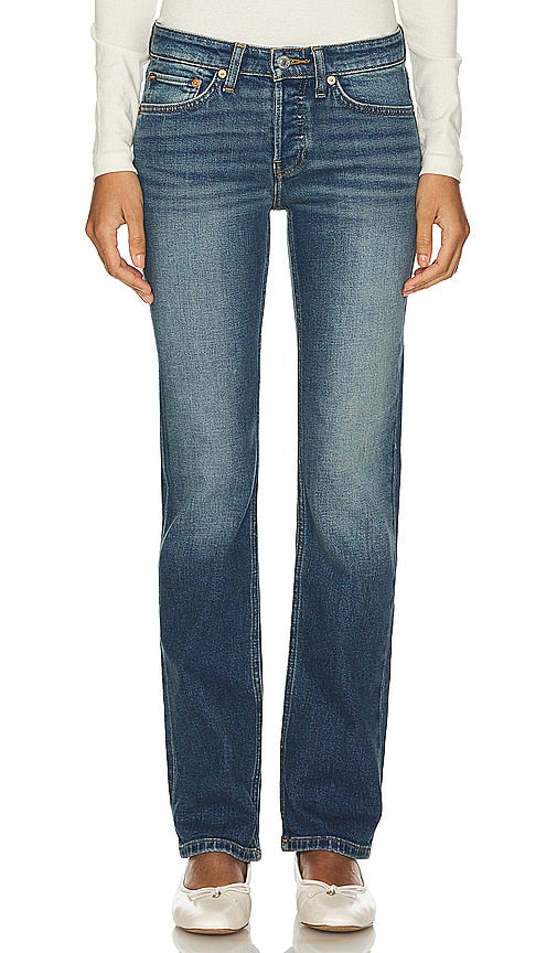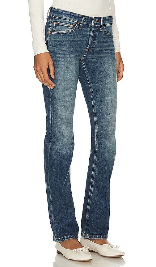 RE/DONE X Pam Anderson The Anderson in Blue. - size 25 (also in 27, 29) RE/DONE X Pam Anderson The Anderson in Blue. - size 25 (also in 27, 29) RE/DONE x Pam Anderson collaboration. Self: 76% cotton 20% recycled cotton 3% elastomultiester 1% spandex Lining: 65% polyester 35% cotton. Made in Mexico. Machine wash. Button fly. 5-pocket design. Heavy whiskering and fading detail. 14 at the knee and 14 at the leg opening. REDR-WJ309. 192-03WANDSON. Iconic. Responsible. Individual. Launched in Los Angeles in 2014 by industry veterans Sean Barron and Jamie Mazur, RE/DONE started with a simple idea of taking the old and making it new again. This is present in everything RE/DONE does from upcycling vintage Levi's to reimagining vintage Hanes tees with recycled fabric. Today, they continue to honor their exclusive heritage partnerships, while expanding their offering to also include recycled knits, upcycled ready to wear, and sneakers handmade in Italy by expert artisans. As of 2020, RE/DONE has upcycled nearly 100,000 pairs of vintage Levis. Shop the latest in fashion from RE/DONE