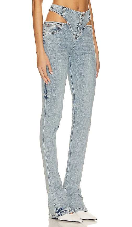 retrofete Britney Jean in Blue. - size 23 (also in 24, 25, 26, 27, 28, 29, 30) retrofete Britney Jean in Blue. - size 23 (also in 24, 25, 26, 27, 28, 29, 30) 98% cotton 2% elastane. Made in Italy. Machine wash. Zip fly with button closure. Hip cut-out design at waistband. 5-pocket styling. 14 at the knee breaks to 16 at the leg opening. ROFR-WJ44. SS23-5396B. Retrofete, launched in 2018 by co-founders Ohad Seroya and Aviad Klin, embodies the glamour and opulence of decades past. Having gained notoriety for its sequin-clad party frocks, the New York-based label has evolved into a collection of daring, top-to-toe designs that seamlessly transform from day to night. Regardless of where she goes, you can count on the Retrofete girl to bring the party. Shop the latest in fashion from retrofete