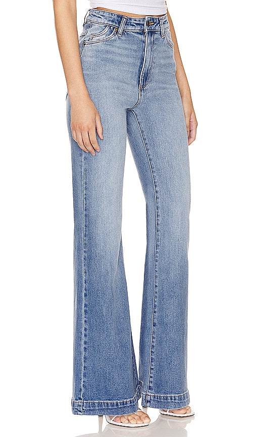 ROLLA'S Eastcoast Flare in Blue. - size 24 (also in 25, 26, 27, 28, 29, 31) ROLLA'S Eastcoast Flare in Blue. - size 24 (also in 25, 26, 27, 28, 29, 31) 99% organic cotton 1% elastane. Made in China. Machine wash. Zip fly with button closure. 5-pocket styling. Stretch denim fabric. 17.5 at the knee breaks to 25 at the leg opening. ROLS-WJ214. R41J49. Rolla's was created by designer couple Andy Paltos and Sarah Gilsenan after spending a decade working for iconic global denim brands. The label embodies the laid-back personality, sexuality and love for jeans of the place where it was born: Australia. Drawing inspiration from 1980's photographers, skateboarders and pub rock bands, Rolla's pares it down and focuses on the classic details and clean lines. It's all about the look, the fit and keeping it simple. Shop the latest in fashion from ROLLA'S