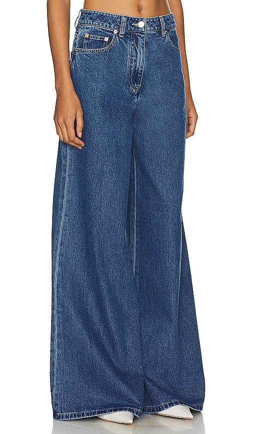 Ronny Kobo Ronnys 70s Flare in Blue. - size 24 (also in 25, 26, 27, 28, 29, 30) Ronny Kobo Ronnys 70s Flare in Blue. - size 24 (also in 25, 26, 27, 28, 29, 30) Self 1: 100% cotton Self 2: 100% cotton. Made in China. Machine Wash. Zip fly button closure. 25.5 at the knee breaks to 31 at the leg opening. RONR-WJ5. 351776DIW. Global brand Ronny Kobo makes headlines for its classic silhouettes, standout prints, and versatile looks. The brand's founder, Ronny Kobo, incorporates her international upbringing into her luxurious designs in order to craft pieces with a universal and ultramodern appeal. With influences from Hong Kong to New York City, Ronny Kobo produces looks that intertwine a delicate balance of trendiness and timelessness. With her cult-following on social media, Ronny redefines the modern woman with every design. Worn by celebrities such as Kim Kardashian and Nicky Hilton, Ronny Kobo is the go-to designer for confident and lavish globe-trotting women with an enviable imagination. Shop the latest in fashion from Ronny Kobo