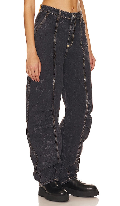 ROTATE SUNDAY Washed Wide Pants in Black. - size S (also in XS) ROTATE SUNDAY Washed Wide Pants in Black. - size S (also in XS) 100% cotton. Made in Turkey. Machine wash. Zip fly with button closure. 3-pocket design. Adjustable back strap. Midweight denim fabric with intentional distressed design. 21 at the knee narrows to 14 at the leg opening. TATE-WJ1. 700386013. Shop the latest in fashion from ROTATE