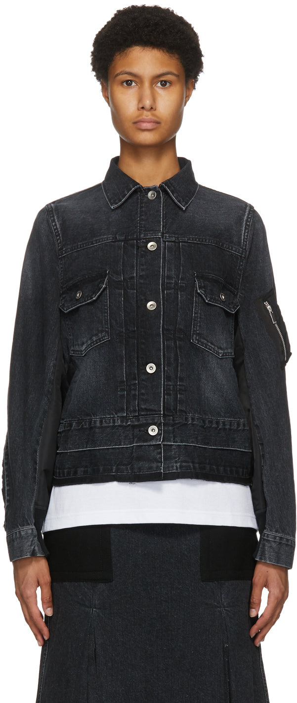 Sacai Black Denim MA-1 Jacket - Veste Sacai Black Denim Ma-1 - 사마이 블랙 데님 MA-1 재킷